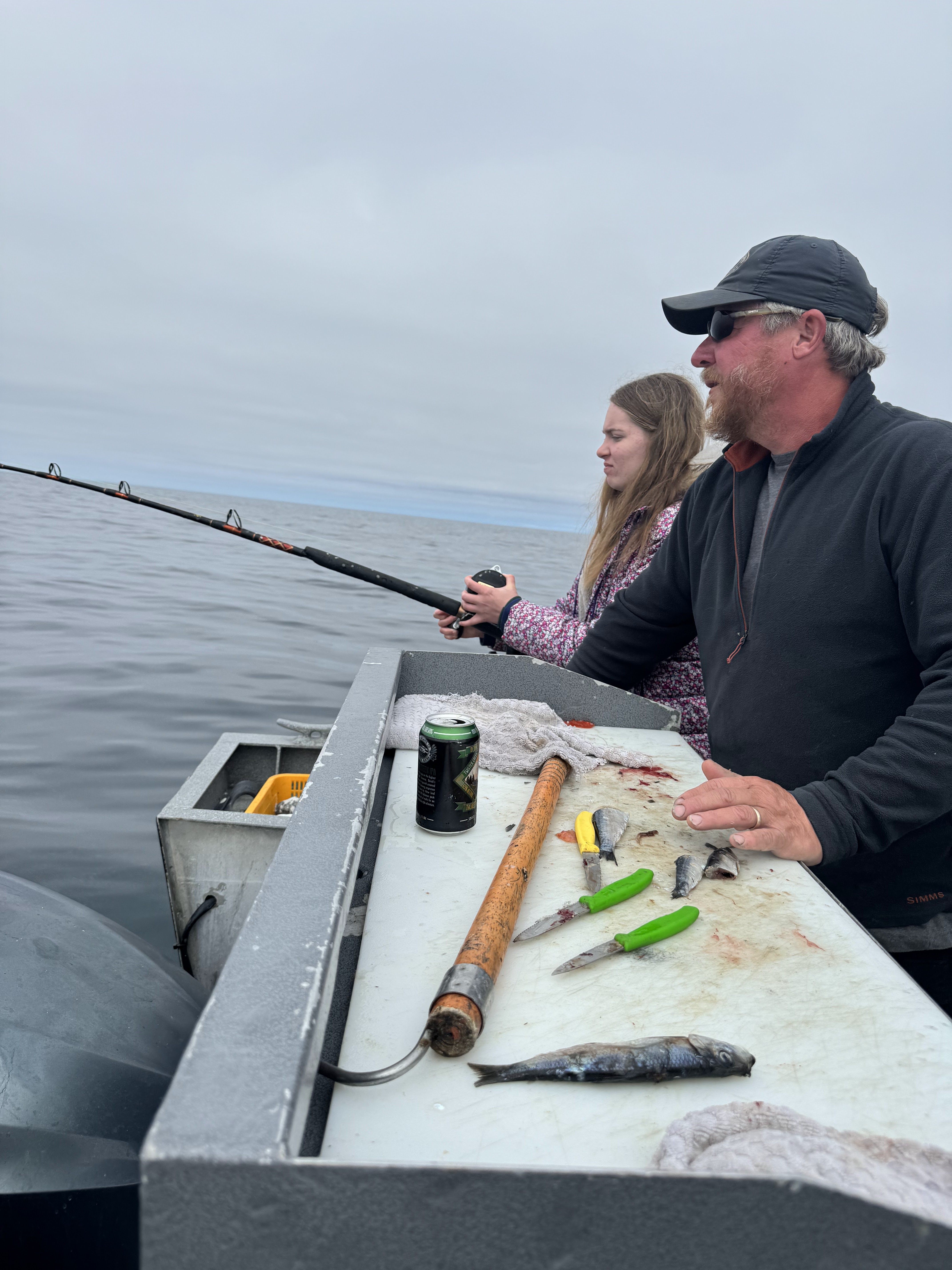We packed up and headed back to port. We had our full limit of 12 halibut, 18 rockfish and the Lingcod. Ray filleted the fish as we travelled.